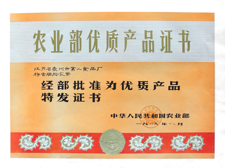 農(nóng)業(yè)部?jī)?yōu)質(zhì)產(chǎn)品證書(shū)