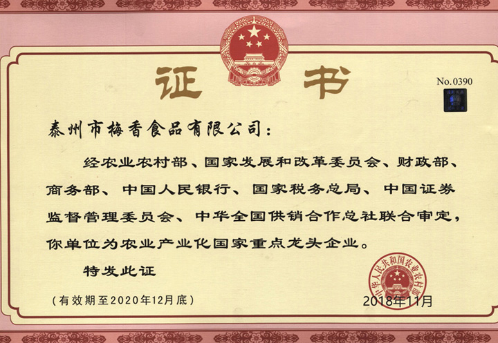 : 江蘇省農(nóng)業(yè)產(chǎn)業(yè)化省級(jí)重點(diǎn)龍頭企業(yè)